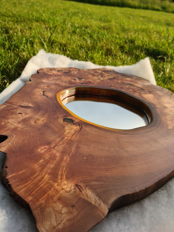 Please have a look through my work, For the more basic mirrors, timber is easier to source and although there are many stages, the construction is quite straight forward. For the more intricate mirrors with wild grain patterns it is very much more of an organic process, timber selection takes time and there is often a significant amount of thought involved in deciding the best way to present the grain and striking features.